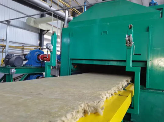 Selama pembentukan serat, pengikat disemprotkan ke dalam ruang pembentuk serat sementara angin tekanan negatif memanaskan dan menarik serat ke bawah ke sabuk mesh untuk membentuk felt asli.Mesin kain pendulum kemudian memproses felt sebelum memasuki tungku pengeras, di mana udara panas mengeraskan material. Akhirnya, produk mengalami pemotongan presisi (baik longitudinal dan melintang) sebelum kemasan dan penyimpanan.